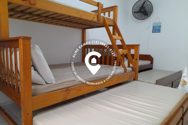 O kitnet para até 4 pessoas, possui cama de casal, treliche, TV, WI-FI, fogão, geladeira, micro-ondas, sanduicheira, cafeteira, liquidificador, dois ventiladores, cadeiras de praia e guarda-sol. Roupas de cama, toalhas de banho e café da manhã por conta do cliente. A garagem é coletiva e se houver vaga, pode estacionar um veículo.